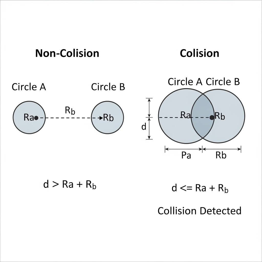 ゲームにおける当たり判定とは、画面上のもの同士が「ぶつかったかどうか」を調べて、それに応じた反応(ダメージを受ける/ゲームオーバーになる/アイテムを取るなど)を起こす仕組みです。