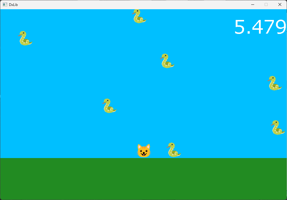 - DxLib(ゲーム用ライブラリ)を使って画面に描画し、ゲームの構成要素を組み立てる