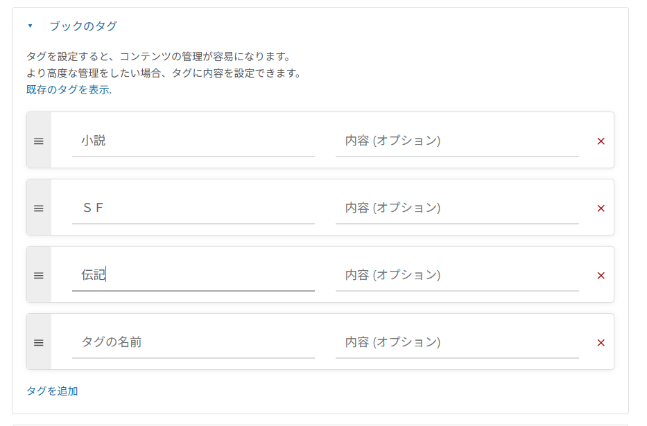 タグを入力しておくことで、分類や検索が楽になる。重複したタグが増えていかないように注意してください。
